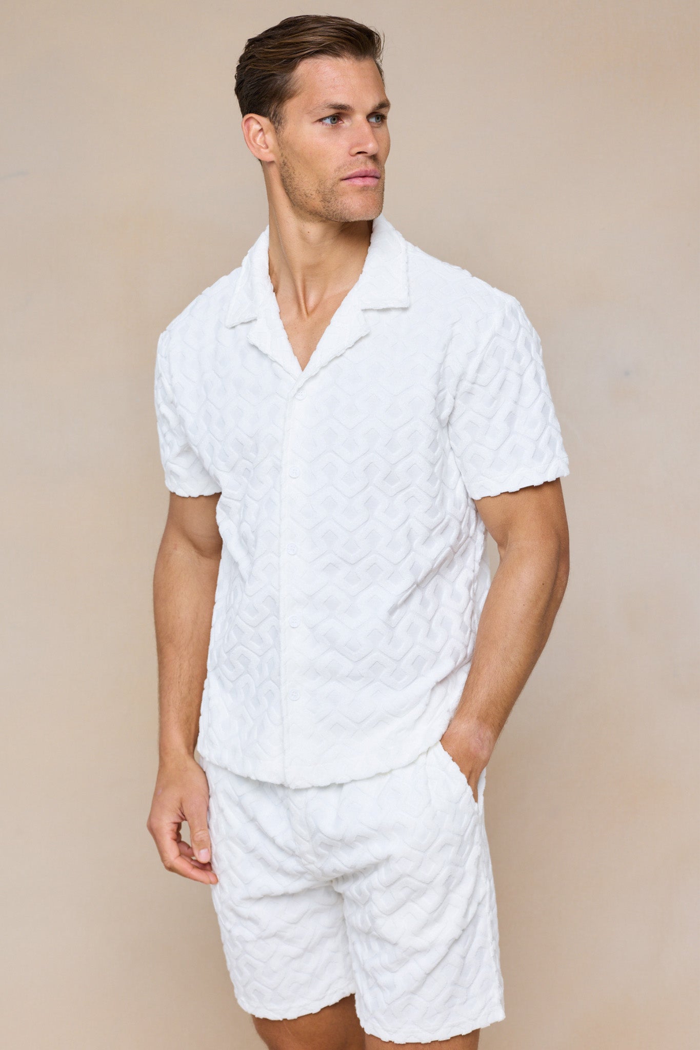 Fontana Flocked Towelled Shirt - Ecru