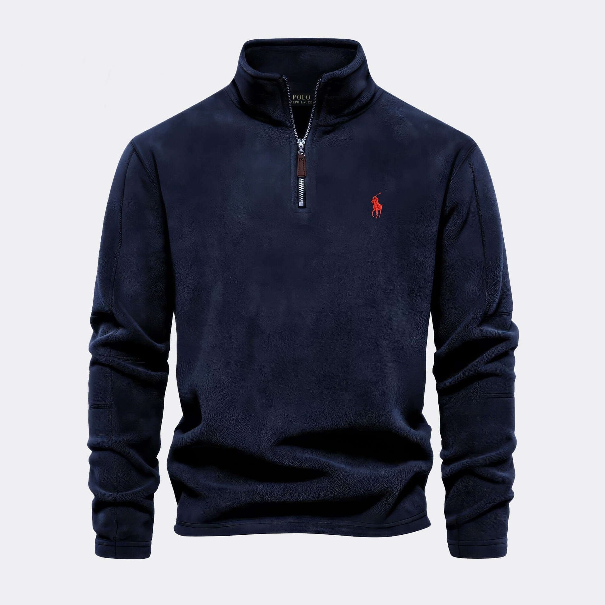 ✔ Refined half-zip collar with a durable metal closure